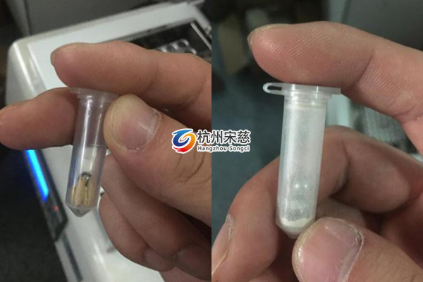 4. 將適配器裝入杭州宋慈研磨儀中,開始研磨,研磨效果如下圖。